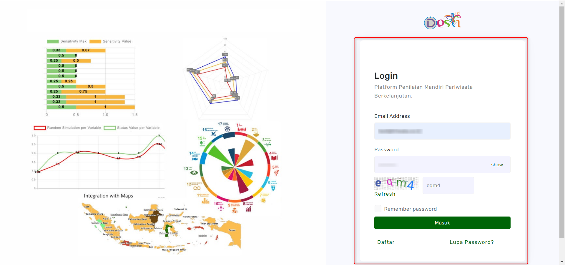 Isilah Form Login/Masuk dengan Email & Password yang terdaftar di dalam website beserta memasukan kombinasi huruf dan angka pada captcha dengan benar