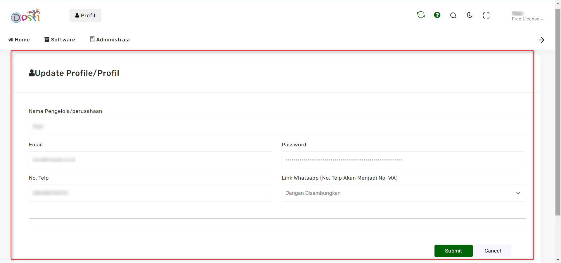 Kemudian update profil sesuai dengan kebutuhan. lalu submit
